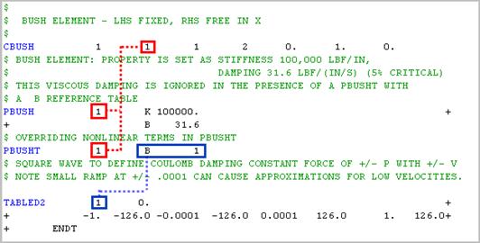 | Figure 2. Wiring Diagram for CBUSH, PBUSH, PBUSHT and TABLED2 for a Coulomb Damping Description. |