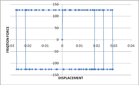 | Figure 6 shows the locus of the damping force against displacement during the analysis. The two friction states are clearly seen and the switching between them. |