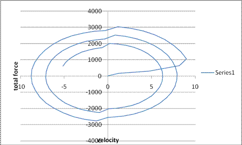| Figure 10 shows the interesting hysteresis curve caused by the damping. The initial impulse takes the point onto an elliptical decay spiral. Smooth arcs are present with slope perturbations in between. This figure needs to be researched some more. |